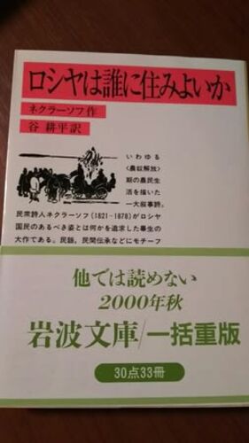 ロシヤは誰に住みよいか/ネクラーソフ 農奴解放後のお話 7人の百姓が「ここロシアでは一体誰が一番幸せに暮らしていけるのか?」と 地主、官員、神父、商人、貴族、皇帝 それぞれにどんな暮らしっぷりかを聞いて回る叙事詩。 皆大変苦労な暮らしっぷりを語る…